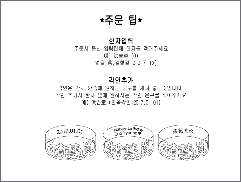 원하시는 한문을 (안쪽각인추가를 하셨을경우 안쪽각인 내용도 함께) 적어주세요